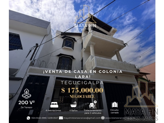 🏡 Se vende casa en Colonia Lara – Tegucigalpa