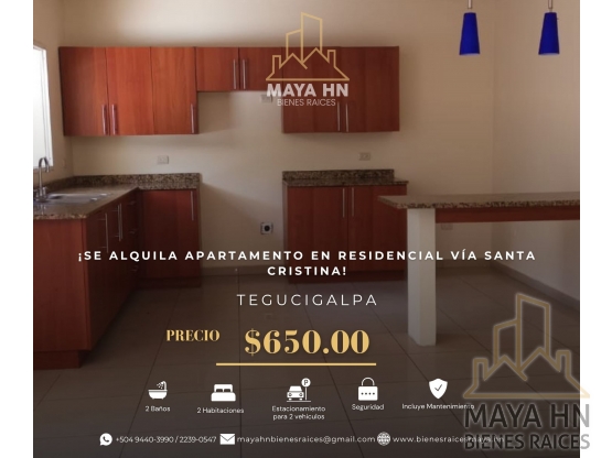 🏢 ¡Se alquila apartamento en Residencial Vía Santa Cristina, Tegucigalpa!
