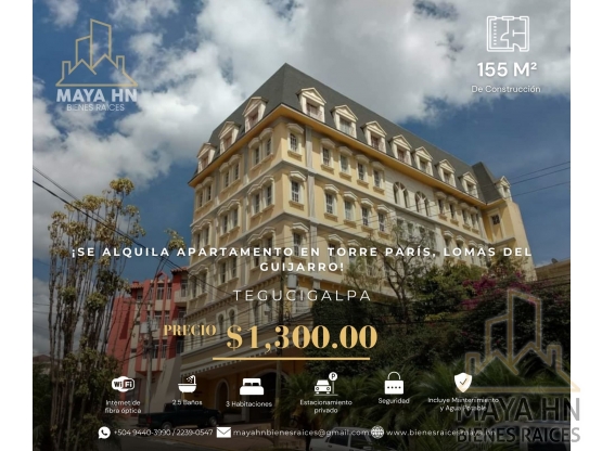 <!--StartFragment -->🏢 Se alquila apartamento amueblado en Torre París, Lomas del Guijarro Sur – Tegucigalpa