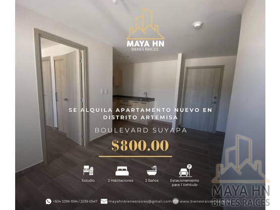 🏢 Se alquila apartamento nuevo en Distrito Artemisa – Blvd. Suyapa