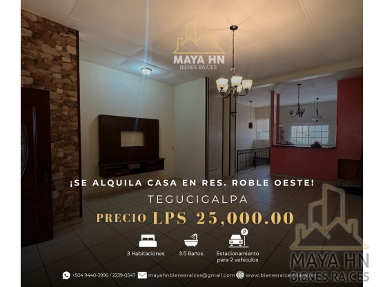 🏡 Se alquila casa en Residencial Roble Oeste – Tegucigalpa