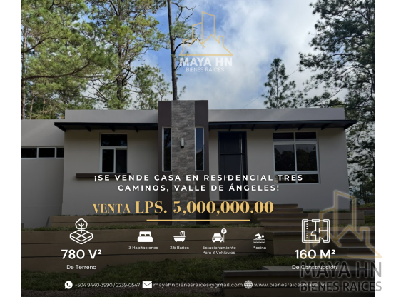 🏡 ¡Se vende casa en Residencial Tres Caminos, Valle de Ángeles! 🌿