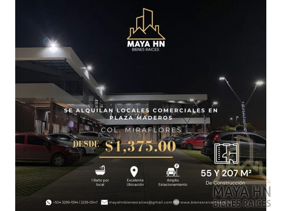 🏢 Se alquilan locales comerciales en Plaza Maderos – Col. Miraflores, Tegucigalpa