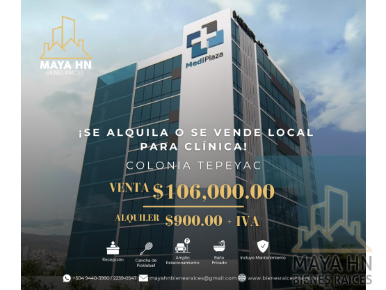 🏢 Se alquila o se vende local para Clínica – Edificio MediPlaza, Colonia Tepeyac