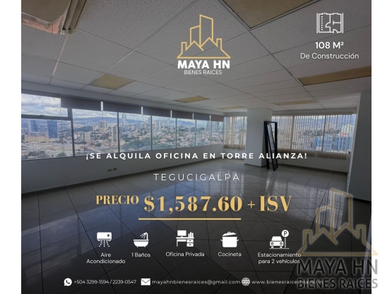 <!--StartFragment -->🏢 Se alquila oficina en Torre Alianza – Tegucigalpa