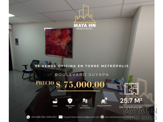 🏢 Se vende oficina en Torre Metrópolis, Boulevard Suyapa, Tegucigalpa