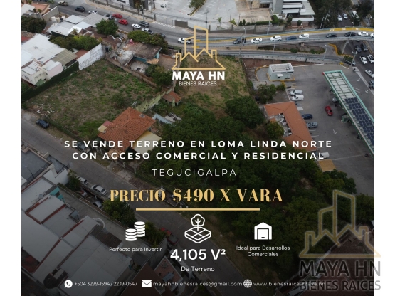 Terreno con ubicación estratégica en una de las zonas de mayor movimiento comercial y vehicular de Tegucigalpa, ideal para desarrollos comerciales, corporativos o proyectos de uso mixto.